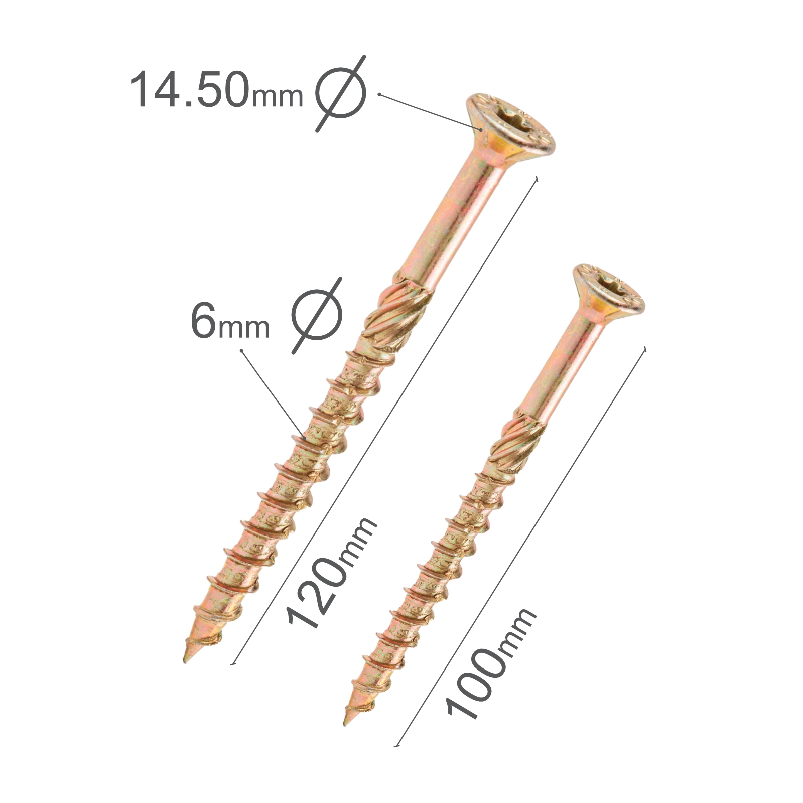 Suruburi dulgherie din otel zincat, disponibile in dimensiunile 6x100 mm si 6x120 mm, sunt esentiale pentru montajul scarilor de pod DEPOSTEP. Acestea sunt proiectate pentru fixari solide si de lunga durata in structuri din lemn sau in combinatie cu dibluri.