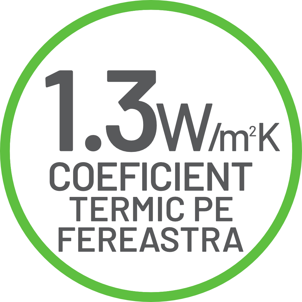 • Coeficient transfer termic Uw = 1.3 W/m²K
