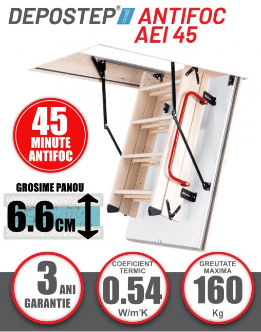 Scara acces pod, mansarda metalica Fakro LMF, 60 minute rezistenta la foc, izolatie 7,9 cm, 3 garnituri periferice, greutate maxima 200kg