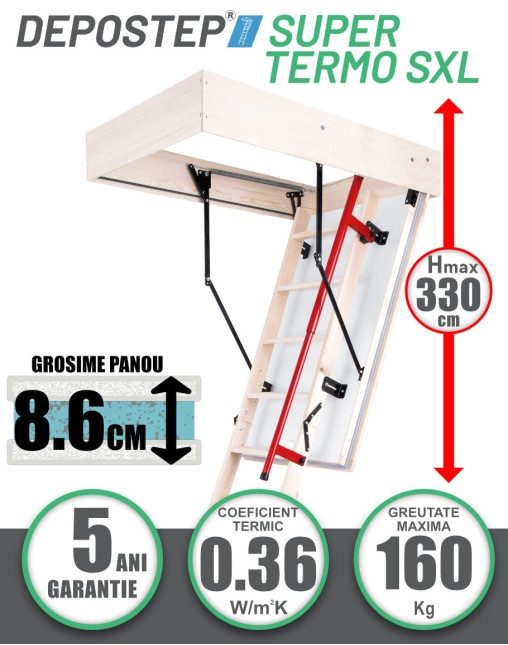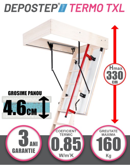Scara acces pod, mansarda premium metalica Fakro LMP, izolatie 3 cm, 1 garnitura periferica, inaltime maxima H366, greutate maxima 200kg