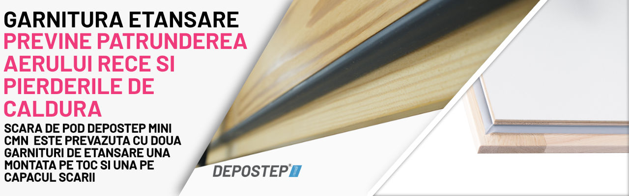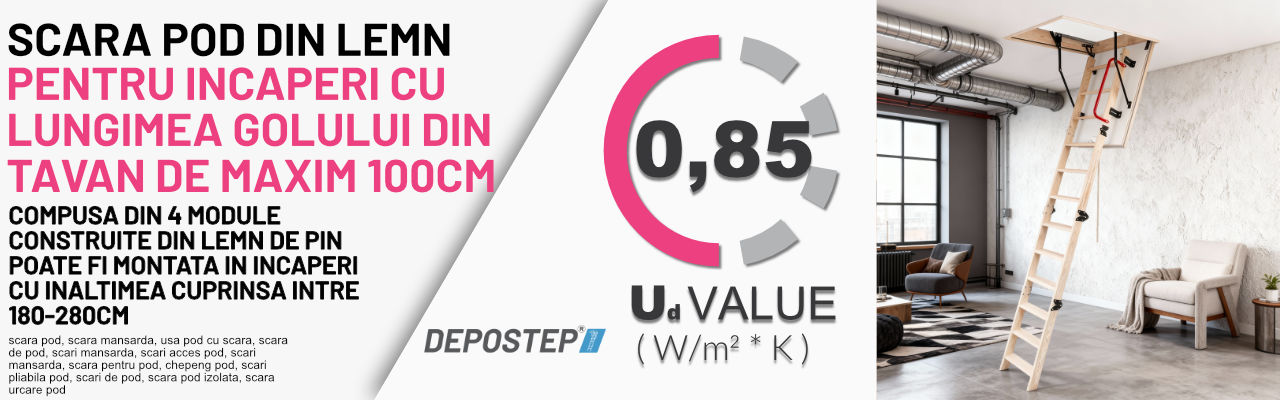 Scara pod DEPOSTEP COMPACT MINI CMN este solutia ideala pentru incaperile unde spatiul de montaj este limitat, iar golul din tavan nu permite instalarea unor scari cu toc lung. Proiectata pentru incaperi cu inaltimea cuprinsa intre 180 si 280 cm, aceasta scara compacta din 4 module ofera acces sigur si confortabil catre pod. Fabricata din lemn de pin stratificat si echipata cu capac termoizolator de 4.6 cm (4 cm izolatie), scara asigura atat stabilitate, cat si o buna eficienta termica. Garniturile duble de etansare contribuie la reducerea pierderilor de caldura, facand din acest model o optiune practica si eficienta pentru locuintele moderne si spatiile inguste.