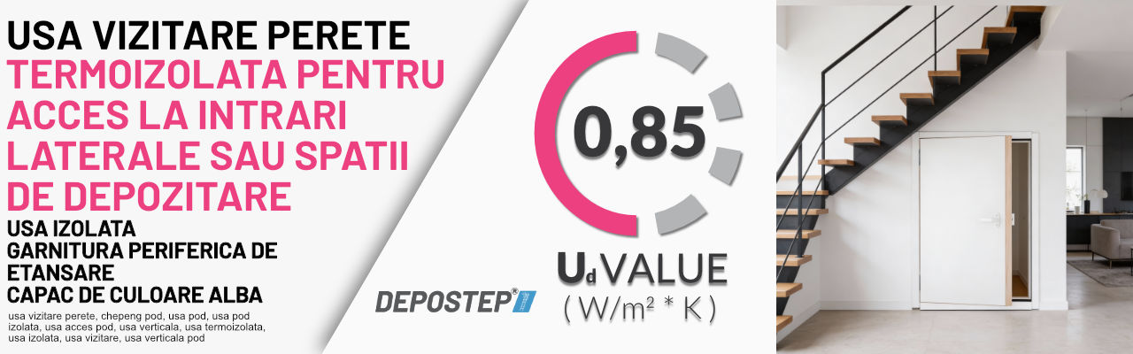 Usa vizitare DEPOSTEP DK EXTRA este solutia ideala pentru acces lateral la pod si spatii de depozitare, oferind izolatie termica, siguranta si estetica moderna. Construita din materiale rezistente si protejata prin finisaj alb de calitate, aceasta usa aduce confort si eficienta energetica in orice locuinta.